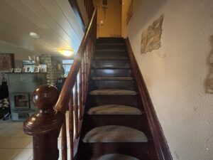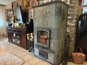 Im Erdgeschoss befinden sich eine gemütliche Küche mit Essecke, ein Wohnzimmer mit effizientem Specksteinofen, ein Schlafzimmer sowie ein Duschbad. Der Specksteinofen sorgt für wohlige Wärme im gesamten Erdgeschoss – alternativ steht auch eine elektrische Plattenheizung zur Verfügung.